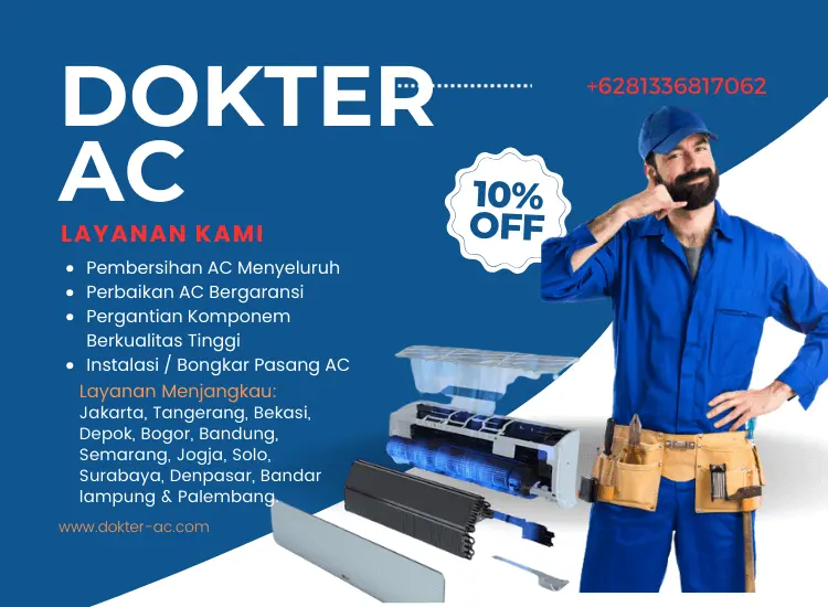 • Dokter AC tidak hanya menyediakan layanan perbaikan AC, namun juga menyediakan layanan instalasi AC baru, penggantian suku cadang, dan pembersihan AC secara berkala. Jadi, jika Anda mencari jasa service AC terdekat yang dapat dipercaya dan memberikan layanan berkualitas, Dokter AC adalah pilihan yang tepat. Hubungi Dokter AC sekarang untuk mendapatkan layanan terbaik dan memastikan AC Anda berjalan dengan lancar.